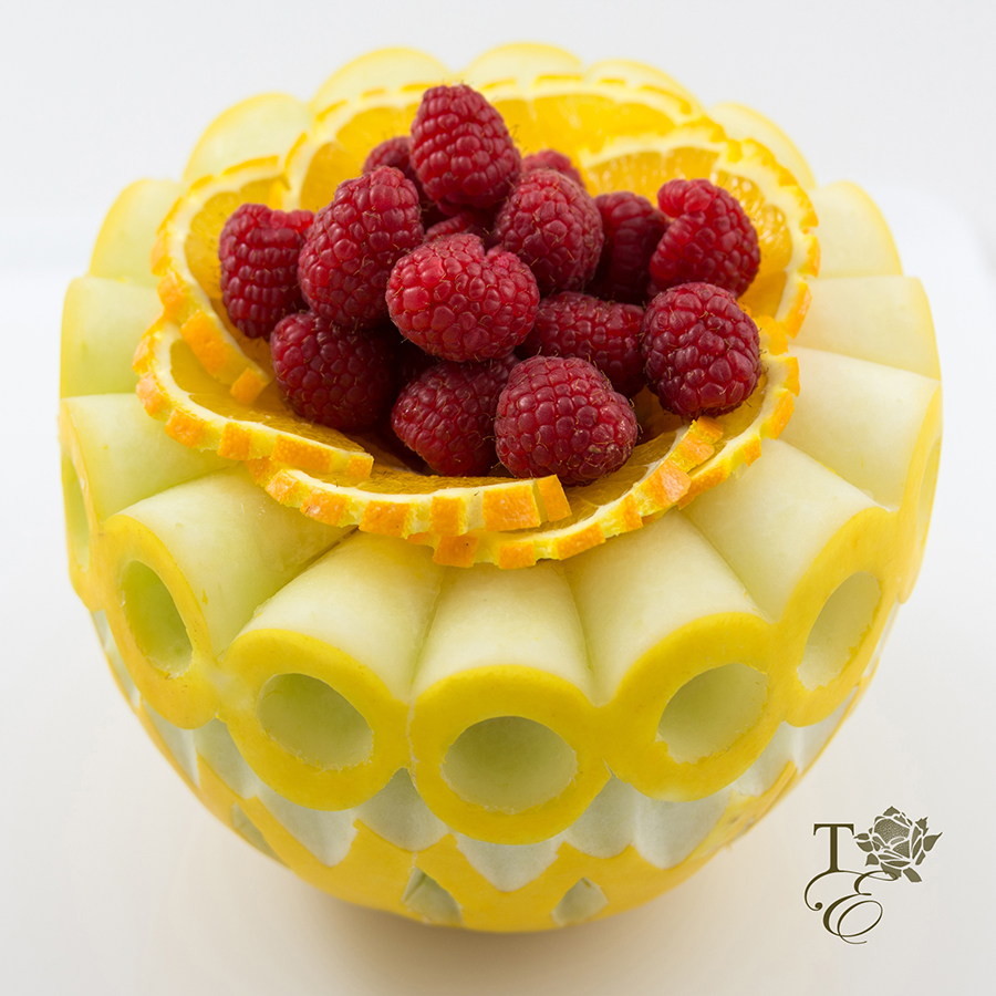 This intricately carved melon can be used as a gorgeous center piece for any event or occasion. Perfect for gifting and decorating. Delicious taste and pleasant to the eyes, what can be more spectacular?!