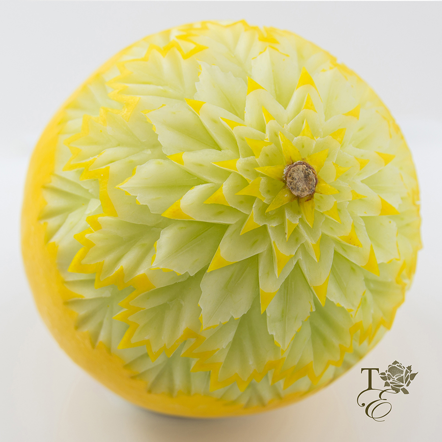 This elegantly carved Melon is carved with such fine detail that it gives off a lacey look. Use this piece to brighten any occassion and bring life to any party.