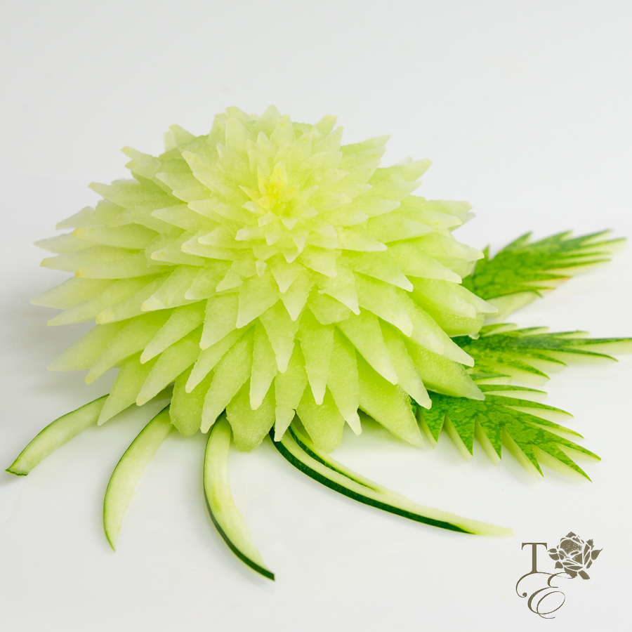 This delicate decorative flower can be used to accessorize and enhance the look of fruit salads, cakes, and any dessert of your choosing. The skilled carving techniques of our artist will surely gain attention from all your guests. Beautiful and sweet!
