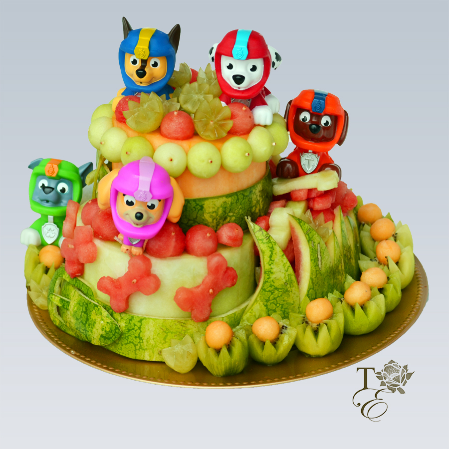 This fun kid favorite is healthy and delicious! With the fun characters, bright colors, and variety of natural flavors, this piece is sure to be a hit at your child's event. Use it to accompany the Paw Patrol theme of any and all parties. Juicy watermelon, tangy kiwis, sweet grapes, and yummy cantaloupe are all uniquely carved to make this fun creation.
