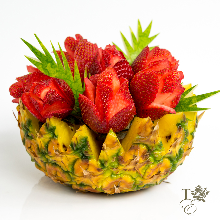 Juicy pineapple and sweet strawberry perfectly arranged to add beauty and uniqueness to your occasions. Dessert takes on a new look with the creations by Tasteful Elegance. Give us a try at your next event, your taste buds will not regret it and you will not feel guilty about eating these desserts.