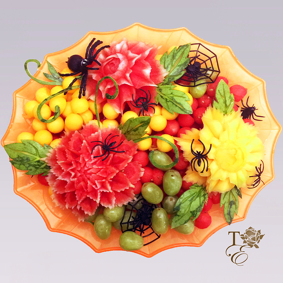 Ingredients: -Watermelon, cantaloupe, & grapes. Accessories: -Toy spiders, bugs, and webs (custom options available)